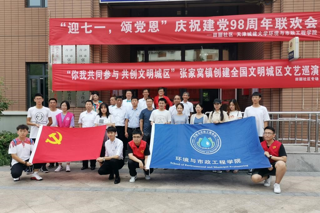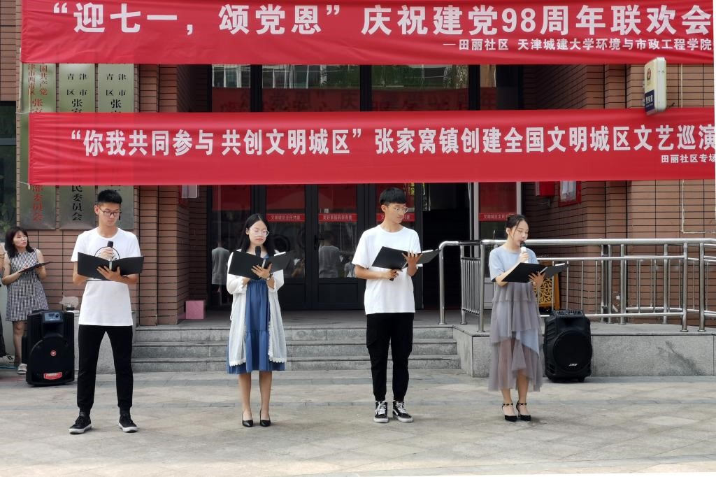 6月29日上午,必赢766net手机版师生党员来到西青区张家窝镇田丽社区党群服务中心与田丽社区党员们共同举办“迎七一,颂党恩”庆祝建党98周年联欢会,为中国共产党98岁生日献上祝福。