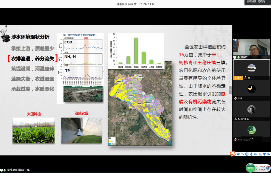3月20日,天津蓝天环科环境科技股份有限公司庞维亮总经理应邀以视频会议的形式为必赢766net手机版师生做题为“河道水生态环境综合提升探讨—以西青重点河道为例”的学术讲座,近五十人参加了此次讲座。庞维亮总经理以西青河道治理工程为案例,从河道现状分析、总体设计、保障措施等不同层面,对河道水生态环境的综合治理进行了系统全面的解析,重点对保水增容、生境恢复、乡村振兴等三个阶段的设计思路和内容进行了深入浅出的讲解。同时,还从未来的职业规划、应具备的技能等方面对环境专业的本科生提出了几点建议、期望及专业前景展望,让大家受益匪浅、备受鼓舞。