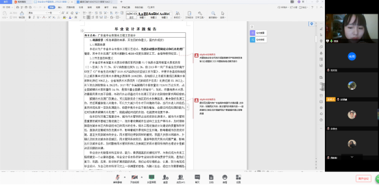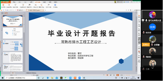 虽然受疫情影响学生不能按时返校,学院大四毕业生们的毕业设计(论文)进展顺利。早在寒假期间,指导教师就已经布置好选题、任务书、设计参数、文献翻译和设计(论文)重点等工作。指导教师们通过微信、QQ群、腾讯会议等线上手段组织学生利用网络资源做好资料查阅、外文翻译、方案设计、撰写开题报告等相关工作,较早地完成了开题汇报的准备。此次采用腾讯会议等形式进行在线开题汇报,别开生面。学生们将开题汇报内容做成PPT或word文件,通过共享屏幕进行汇报,期间学生们通过视频展示了自身良好的精神面貌,老师们细心审阅、提出问题并给出修改建议。
