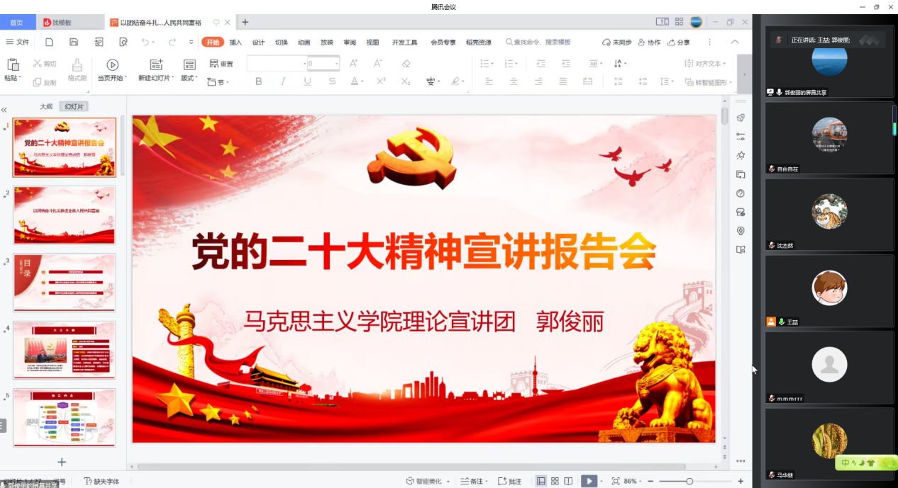 为进一步深入学习贯彻党的二十大精神,落实立德树人根本任务,将党的二十大精神一体贯通,有机融入课程思政,11月21日晚,必赢766net手机版课程思政教学研究分中心举办党的二十大精神第三期集体备课会。学院副院长王喆主持会议,邀请马克思主义学院郭俊丽主讲,必赢766net手机版全体教师参会并开展交流发言。