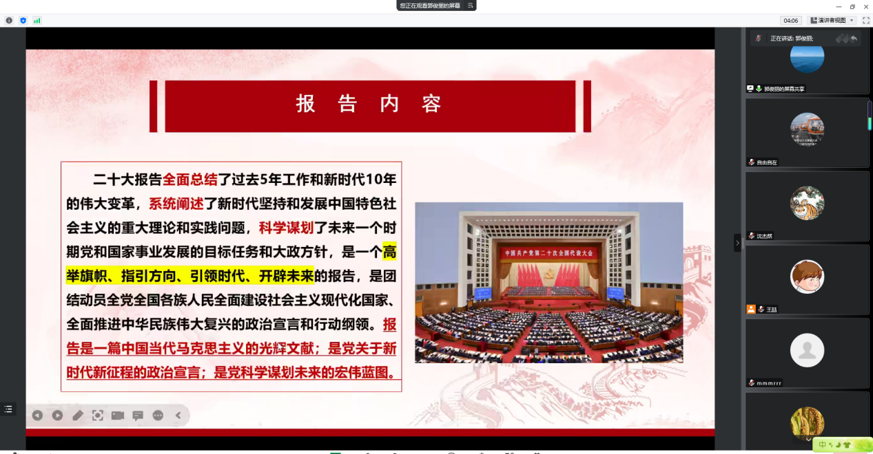 王喆在总结时说,学院课程思政教学研究分中心贯彻落实学院党委的安排部署,举办集体备课是更好地推动学习宣传贯彻党的二十大精神在专业课中走深走实、实现课程思政全覆盖的重要举措之一。全体老师要切实提高政治站位,充分认识学习宣传贯彻党的二十大精神的重大意义,全面准确领会党的二十大精神,把握正确导向、打磨精品课程思政,切实推动党的二十大精神入脑入心。