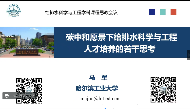 开幕式上,中国工程院院士、哈尔滨工业大学马军教授做“碳中和愿景下给排水科学与工程人才培养的若干思考”的主旨报告,从学科使命、生态文明素质、交叉学科复合人才培养等方面详细介绍了课程思政在碳中和愿景下的理论是实践。