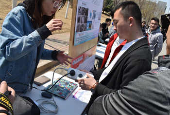 我院学生主动参与创意集市,进行交流分享,促进思想碰撞。