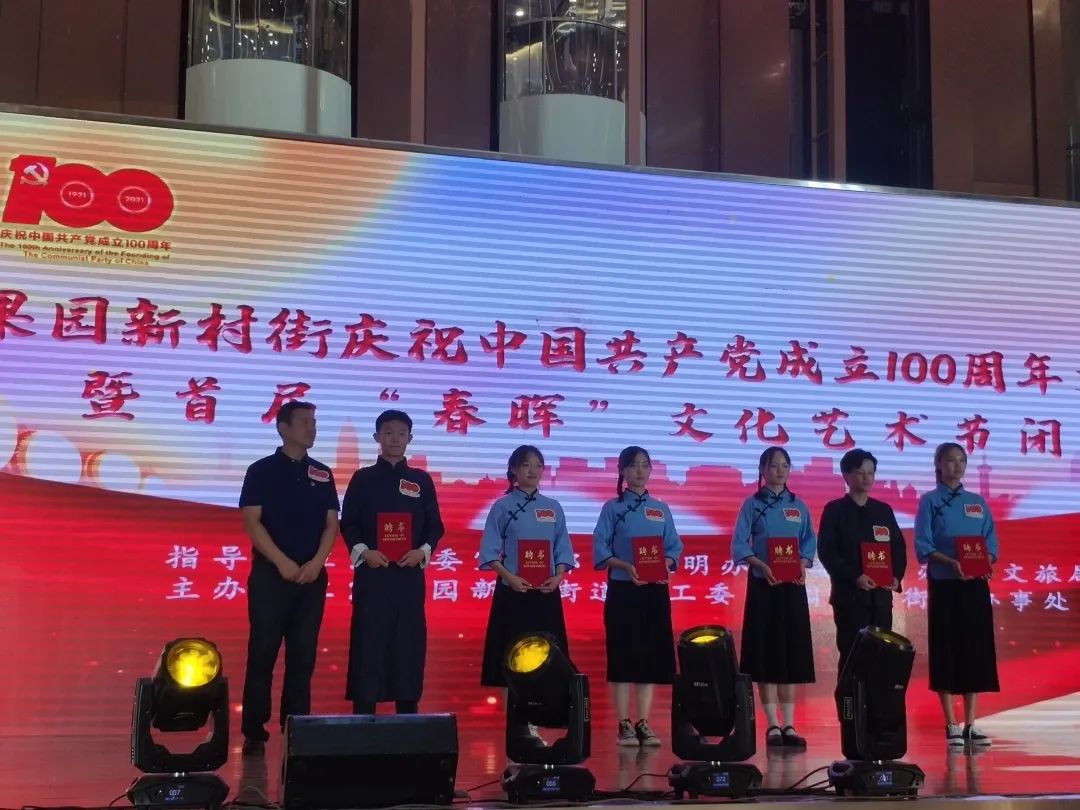 签约仪式前,北辰区果园新村街道办事处为我院文化志愿服务优秀学生代表颁发聘书。为深入展现新时代青年学子的昂扬斗志精神面貌,签约仪式后环境工程系学生第二党支部书记带领文艺志愿者为街道群众带来舞蹈《红色记忆》。