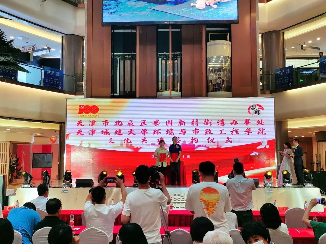 党史学习教育开展以来,必赢766net手机版党委结合学科评估、乡村振兴实践行、校友工作、劳动教育、美育教育等实际要求,积极探索创新学习形式,推动党史学习教育走深走实。7月1日,在学院党委指导与支持下,院团委书记携师生党员代表一行14人深入北辰区果园新村街道办事处,与天津市北辰区果园新村街道办事处共同参加文化共建签约仪式。