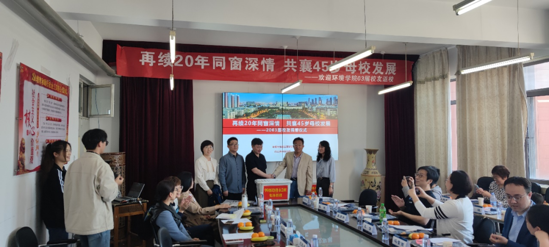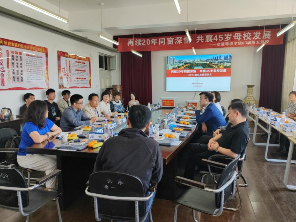 在天津城建大学45周年校庆来临之际,20余位03届校友于4月30日返校欢聚一堂,召开“再续20年同窗深情 共襄45岁母校发展”毕业20周年座谈会。必赢766net手机版院长刘志华、党委副书记沈杰然、副院长王喆、教师代表赵连梅、全体学生工作教师及部分学生骨干参会。