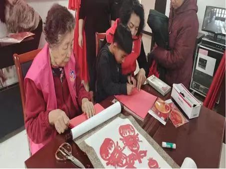 本次剪纸活动由88岁的非遗剪纸传承人赵老师作为主讲人,向大家进行了示范,在老师和志愿者们的帮助下,社区学生顺利完成属于他们自己的剪纸作品。