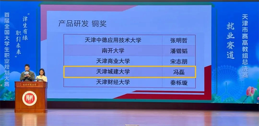 自2023年9月首届全国大学生职业规划大赛天津市赛启动以来,学校充分利用校园媒体、新媒体、宣传海报等多元传播渠道,全方位对赛事进行宣传推广,参与人数达8000余人。最终,学校推荐2名成长赛道、5名就业赛道选手参加天津市赛,经市初赛网络评审,我院冯磊同学荣获就业赛道铜奖。