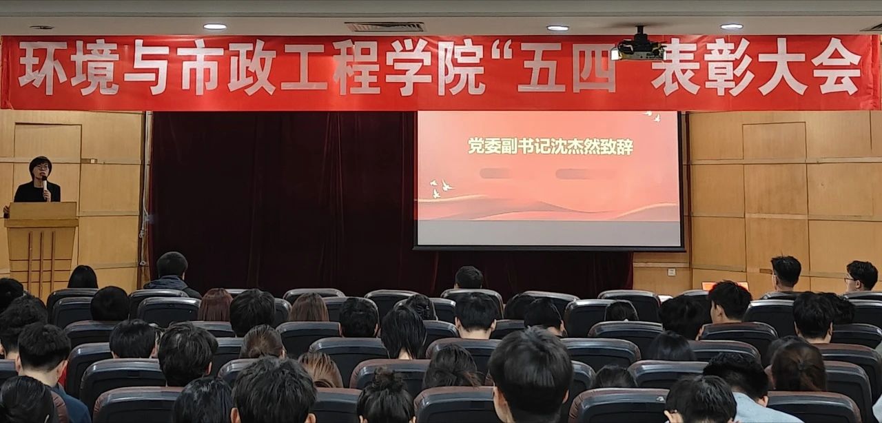 党委副书记沈杰然代表学院党委向受表彰的先进集体、优秀个人致以热烈的祝贺。同时,对我院共青团组织各方面表现作出肯定,并向广大团员青年提出三点要求:一是要坚定理想信念,志存高远、脚踏实地。各级团组织、团员青年要认真学习贯彻习近平新时代中国特色社会主义思想,贯彻落实习近平总书记视察天津重要讲话精神。二是要锤炼政治品格,扣好人生的第一粒纽扣。要勤于学习,努力成为“学有所长、业有所专、技有所精”的一代新人。三是要厚植爱国情怀,奉献青春力量。不忘学习初心,强化使命担当,认真履行职责,为国家环保事业的建设发展贡献青春力量。