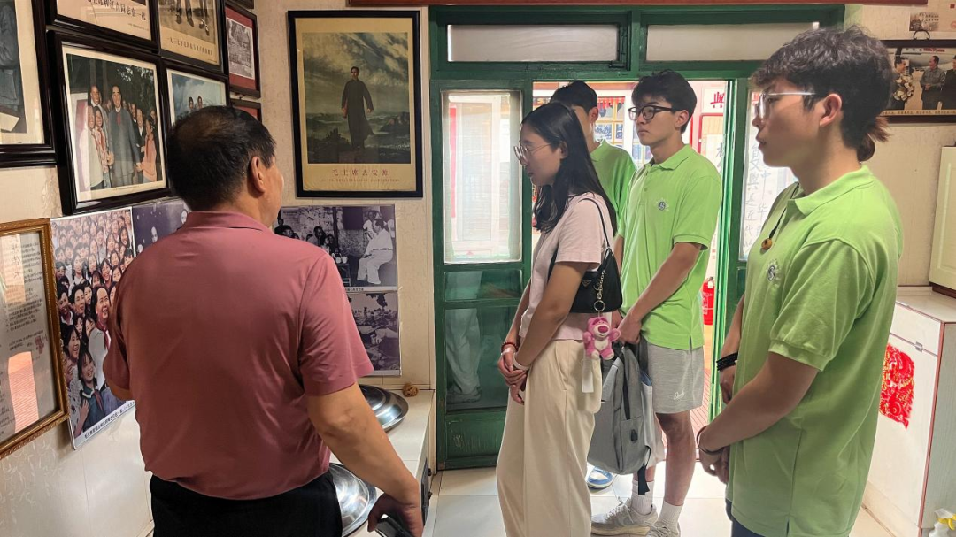 在北淮淀村,坐落着一座由当地红色传承人张井满个人投资兴建的《红色记忆纪念馆》,实践团成员第一站便来到这里追寻红色记忆,缅怀革命先烈,汲取奋进力量。整座纪念馆使用面积510平方米,共5个展区,25个展示柜,在一件件展品、一幅幅照片、一声声讲解中,实践团成员从一位朴实的党员感受到了炽热深沉的爱国之情、朴实无华的真挚情感,在馆长的带领下上了一堂生动且难忘的红色文化传承教育课。