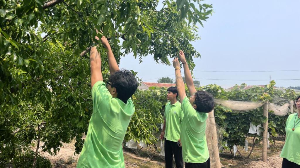 宣讲团成员挽起裤脚,亲近土地,手握秧苗,在村民带领下于田间地头开启了实干之旅。在剪枝、摘果、耕地的劳动中,青年学生们“自找苦吃”,主动了解乡村基层,服务乡村振兴,在躬耕笃行中为乡村发展注入青春动能。