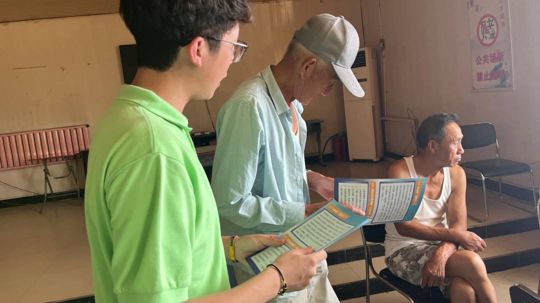 在北淮淀党群服务中心,实践团成员与村干部进行交流座谈。在了解北淮淀村基本情况后,实践团成员结合自身特长,就村内河蟹养殖、环境治理、基层普法宣传等方面内容进行交流探讨,深入乡村集市、综合文化活动中心等地点开展普法调研及宣讲活动,助力基层法治建设。