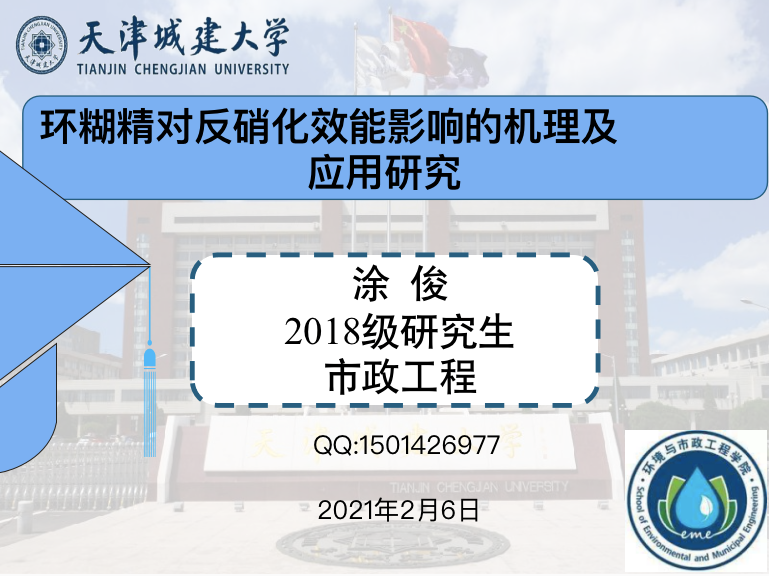 在“环培立学—研究生学长学姐有话说”系列主题讲座前两期取得圆满成功之后,我院举办了该系列讲座的第三期。讲座第三期以“环糊精对反硝化效能影响的机理及应用研究”为主题,邀请18级研究生涂俊同学作为主讲嘉宾进行宣讲,我院七十余名学生参加了此次讲座。