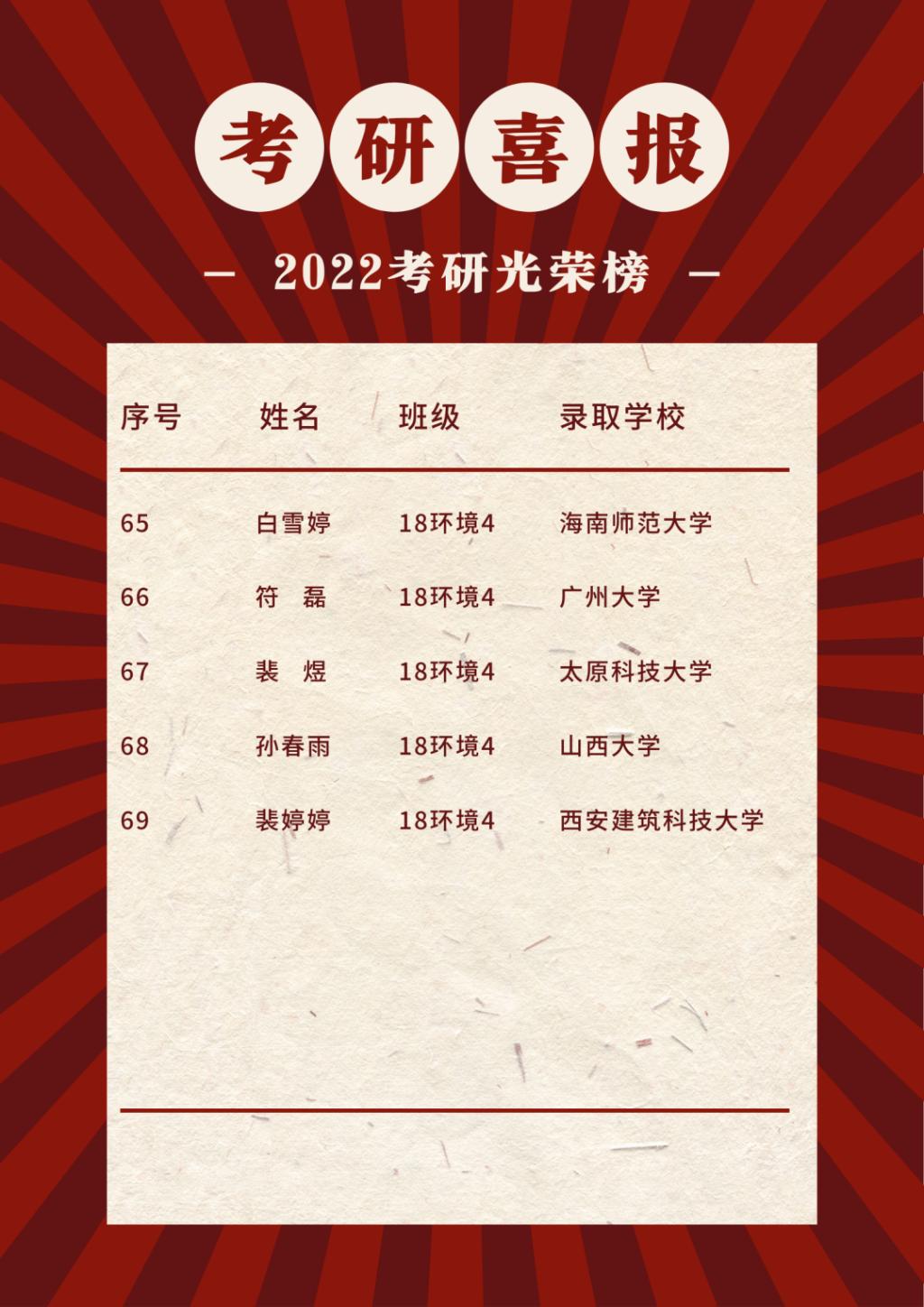 又是一年收获季,在五四青年节来临之际,城大必赢766net手机版学子考研战场捷报也是喜讯不断。今年考研“上岸”人数共计69名,又有一批优秀的学长学姐获得国内高校的青睐,获得继续深造的机会。