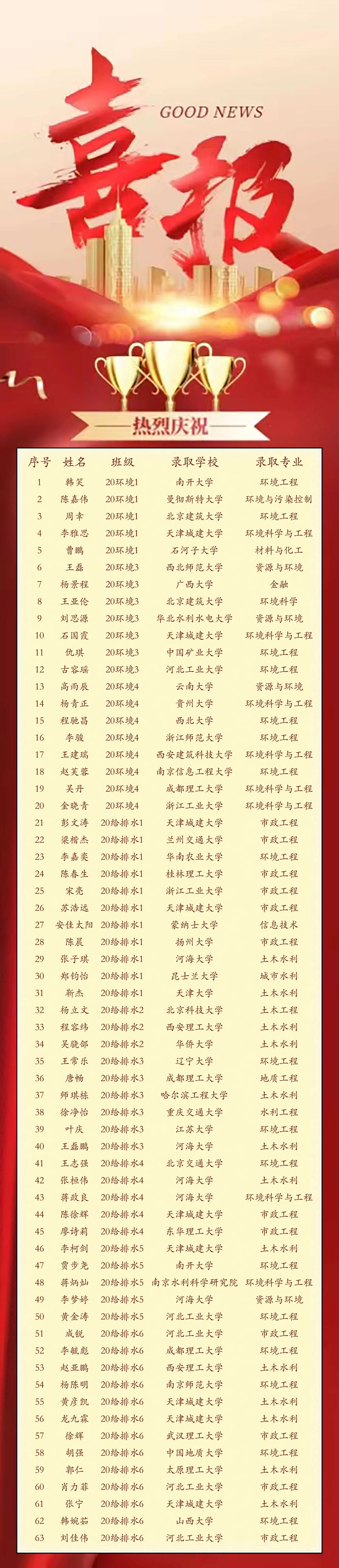 乘风破浪潮头立,青春奋斗正当时!必赢766net手机版2024届本科毕业生携鸿鹄之志,以坚如磐石的信念、披荆斩棘的勇气,乘风破浪,获得可喜佳绩。截至目前,学院有63名同学被国内外知名高校录取,升学率21.36%!