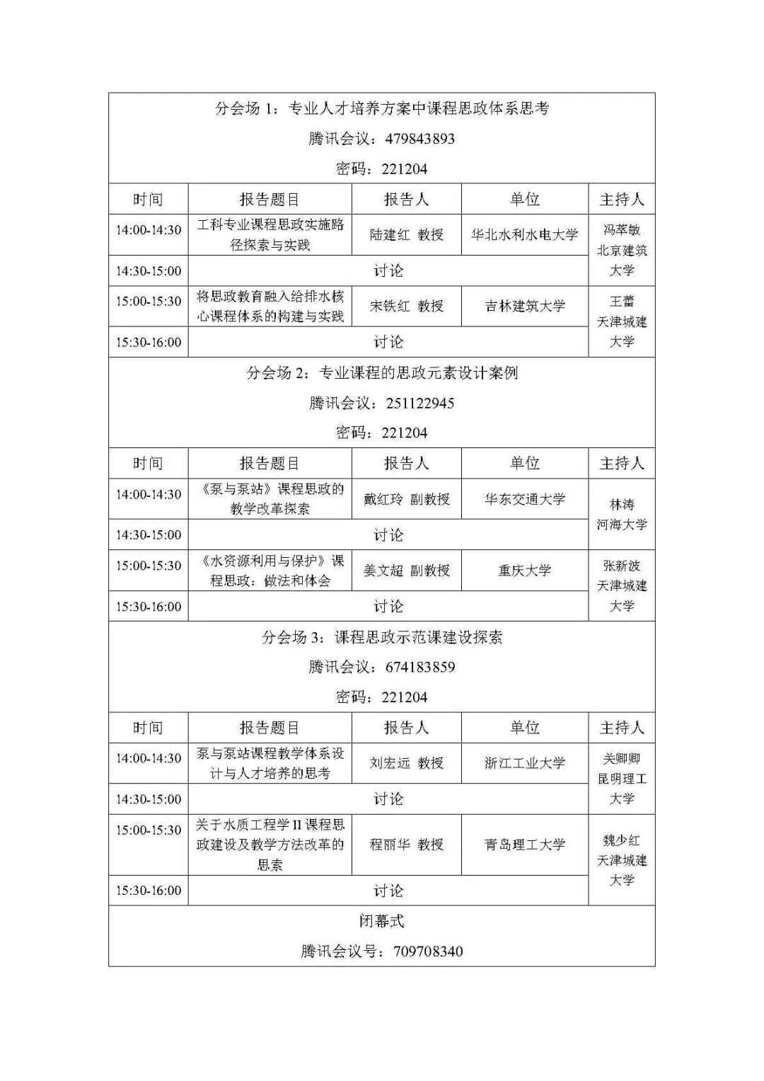 课程思政研讨会会议议程如下: