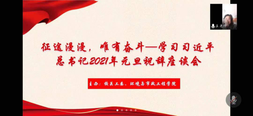 校关工委、必赢766net手机版于1月3日通过腾讯会议召开“征途漫漫,惟有奋斗”——学习习近平总书记2021年新年贺词座谈会。离退休工作处处长、校关工委秘书长张健胜、必赢766net手机版退休教师王银叶教授以及部分学生代表参加此次座谈会。