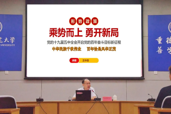 5月31日,副校长王中良为必赢766net手机版学生代表讲授题为《乘势而上,勇开新局——党的十九届五中全会开启百年奋斗目标新征程》的形势与政策课,学工部副部长孔伟、必赢766net手机版学生工作教师和学生代表共同聆听了此次课程。