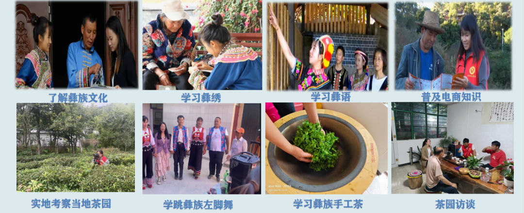 在当地政府的引荐下,实践队成员来到双柏白竹龙笙茶叶有限公司法定代表人佘剑蓉的茶园中,与茶农同吃同住,深入体验茶农生活。成员亲身参与了白竹龙笙云雾绿茶的制作全过程:采摘-萎凋-杀青-揉捻-干燥-包装,在深感茶农不易的同时,决定通过所学帮助其宣传,弘扬茶文化,助力乡村振兴。实践队将当地非物质文化遗产-彝族“老虎笙”与白竹山茶进行有机结合,将“老虎笙”的文化内涵以文化IP的形式融入茶叶的宣传、包装中,并投放到抖音等平台宣传售卖,在销售茶叶的同时弘扬非遗文化。成员为茶园拍摄了精美宣传片以及制作宣传海报,增加产品知名度;打造当地网红带动旅游发展、茶叶销售;向茶农普及电商销售知识,提高农户线上销售技能;建立企业订单基地,推广“非遗+茶旅+云销”项目模式。团队成员还设计了产品外包装及文化宣传产品水杯等,目前均已投入使用。通过实践队的帮助,茶园茶叶的知名度和销量都得到了一定的提升,净利润比往年增长了5%。佘剑蓉说:“十分期待与青年力量的合作,青年一代拥有天然的专业优势、创新思维与无限潜能,可以为家乡的茶文化传承与发展贡献力量。和必赢766net手机版共建实践基地,是互利共赢的首要选择。”