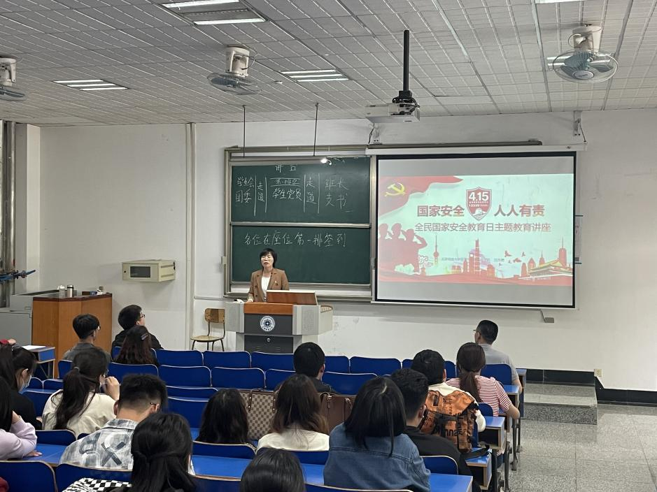 最后,沈杰然讲授国家安全主题党课。她从国家安全基本常识、危害国家安全及相关罪名、如何维护国家等几方面进行介绍。引导学生牢固树立国家安全意识,提高学生维护国家安全的能力。同时结合近期学院工作进行部署,并对学生干部提出工作要求,期望全体学生党员和学生骨干明确努力方向,肩负工作责任,将个人成长与学校、学院事业发展紧密结合起来。