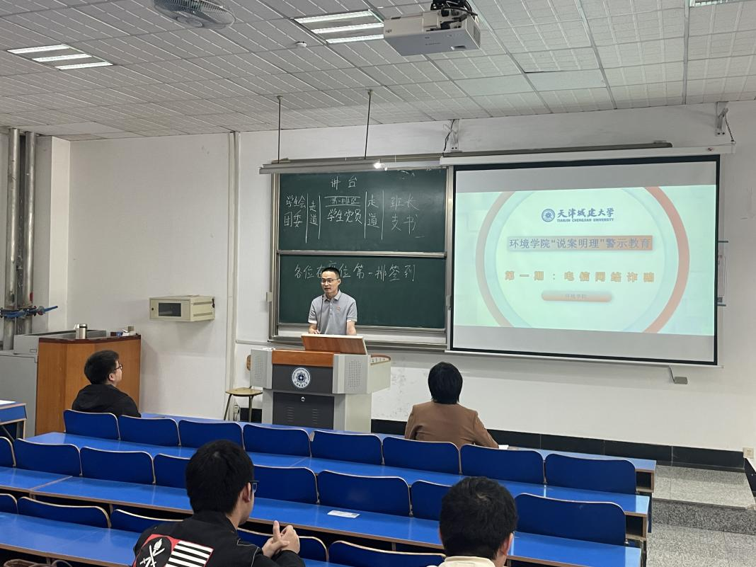 会议伊始,保卫处杨福来老师进行“说案明理”警示教育,他结合生动的案例给同学们从电信诈骗、校园暴力、诚信考试等方面进行深度剖析,进一步提升同学安全意识。