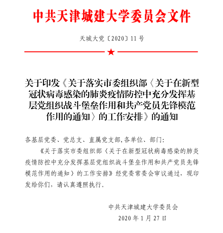 天津城建大学新型冠状病毒感染防控工作指挥部文件