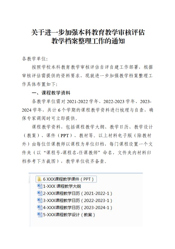 关于进一步加强本科教育教学审核评估教学档案整理工作的通知