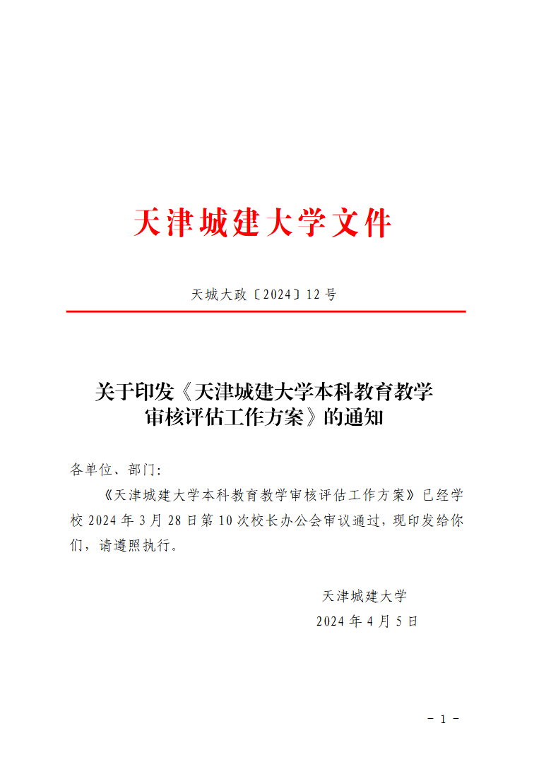 天城大政〔2024〕12号(关于印发《天津城建大学本科教育教学审核评估工作方案》的通知)